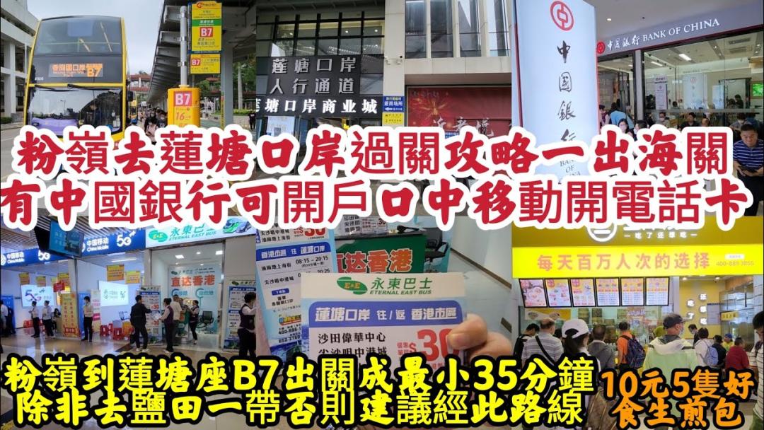 粉嶺去蓮塘口岸過關攻略 一出海關有中國銀行可開戶口 中移動開電話卡 10元5隻超水準生煎包 粉嶺到蓮塘座B7出關最小35分鐘 除非去鹽田一帶否則不建議經此路線 2023-4-22