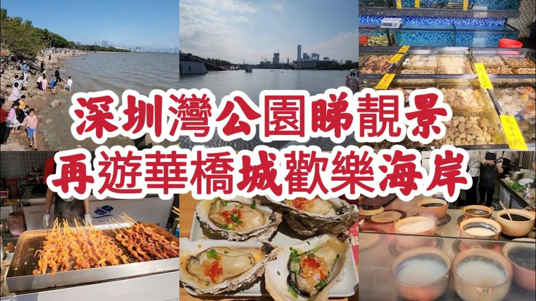 深圳灣公園睇靚景 再遊華橋城歡樂海岸免費入場 感覺似主題公園 吃喝換樂 食木屋燒烤 2023-2-11