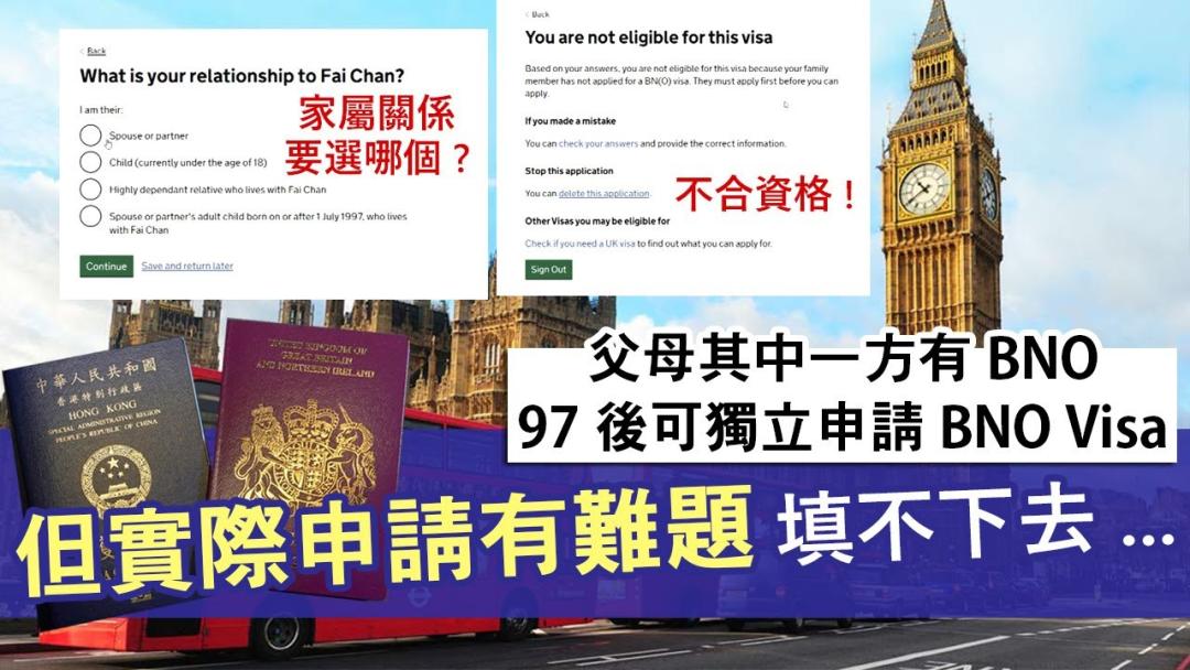 BNO Visa更新:BNO持有人、97後出生的子女可獨立移英│詳列所須文件 手上無父母BNO都可查詢解決│惟實際申請竟然有Bug 遇上大難題!│關係選項改變其他申請人都受影響