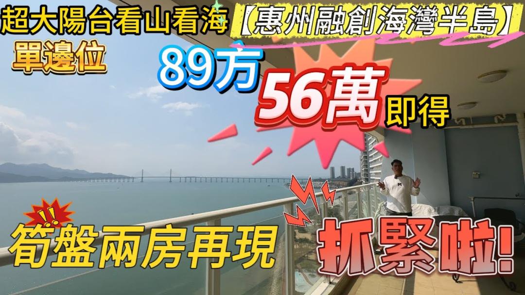 【惠州融創海灣半島】筍盤兩房再現|單邊位|超大陽台看山看海丨89方56萬即得丨抓緊啦!