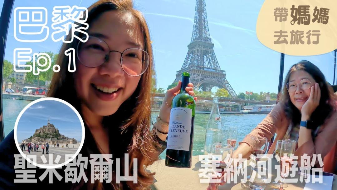 【帶媽媽去旅行-巴黎Ep1】塞納河上的法式午餐,喝到醉醺醺~在聖米歇爾山差點被吹走!|聖米歇爾山|塞納河午餐遊船Bateaux Parisiens