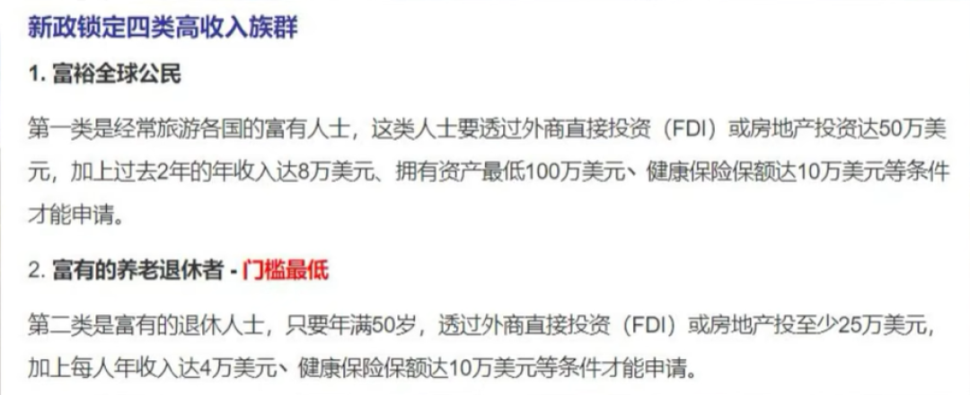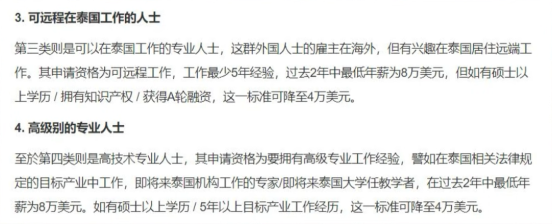 Location Thailand 泰國 Recorded 2022-04-03 泰國最強10年簽證可買屋買地啦 | 原來太太有這樣多萊地!? 我不想努力了... Kiinthailand 奇在泰國 2021-10-20 相關圖片 相關消息 Image Image 好處 個人名義買地買屋 10年簽,不用報到 可在泰國工作 申請人類比 富豪 - 投資泰國政府債卷或投資房地產達50萬美元,年收入達8萬美元,資產逾100萬美元 退休人士 - 年滿50歲,泰國政府債卷或投資房地產達25萬美元,年收入達4萬美元 泰國遙距工作人士 - 年收入達8萬美元 高技術專業人士 - 年收入達8萬美元 在泰國 外國人可以個人名義買地買屋了!? | 泰國疫情再度大爆發,政府只好出終極大招救經濟!? Kiinthailand 奇在泰國 2021-04-15